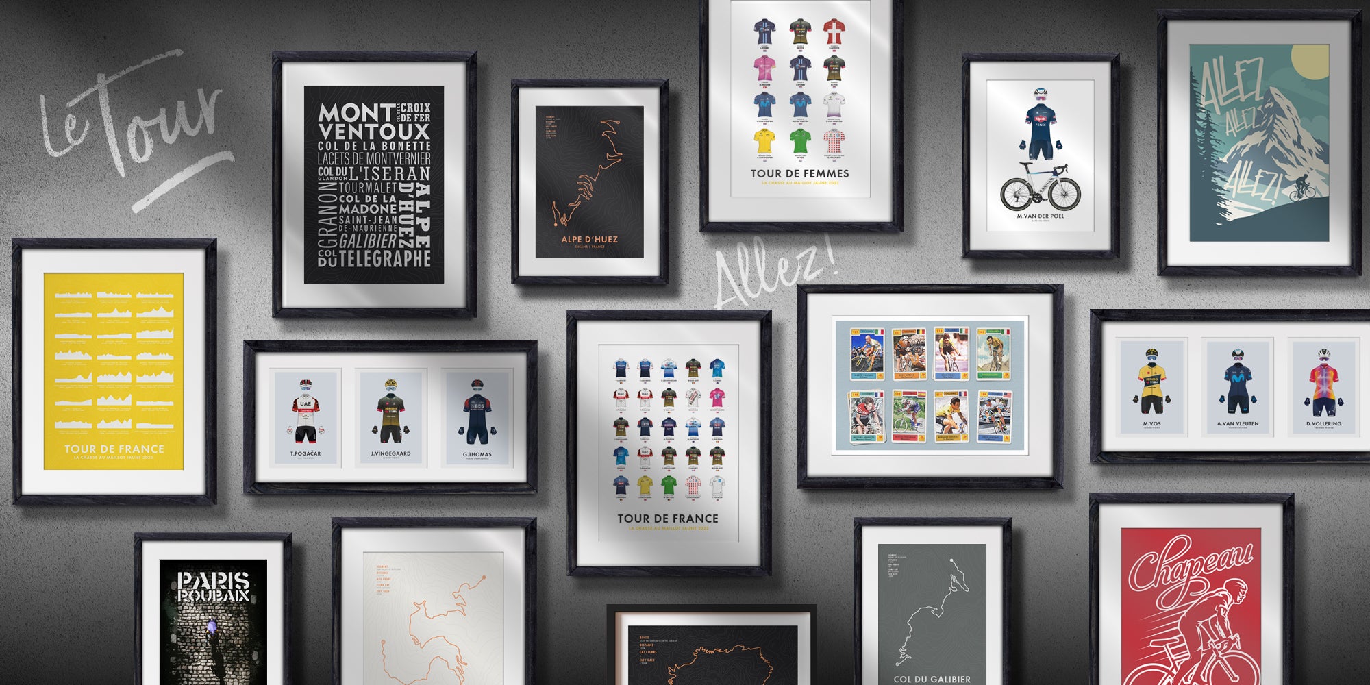 Find inspiration in your home or motivation in your pain cave with our wide selection of stylish, minimalist art prints for keen cyclists.