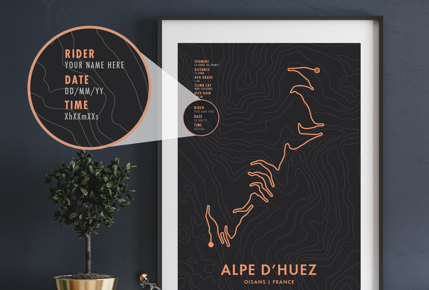 Alpe d'Huez Cycling Art Print - Route Map with Personalise Options